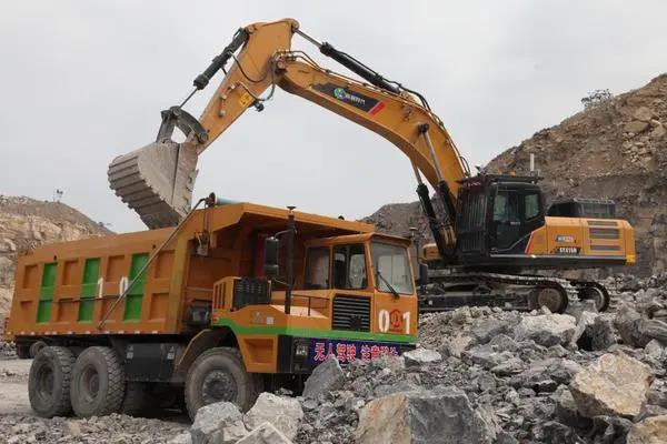 河南能源焦煤公司千業水泥5G無人駕駛挖掘機正在露天礦區現場作業攝影/劉建軍