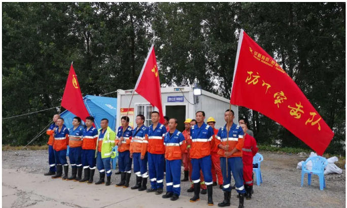 華新陽新骨料公司黨員防汛救災(zāi)突擊隊?wèi)?zhàn)斗在防汛搶險一線