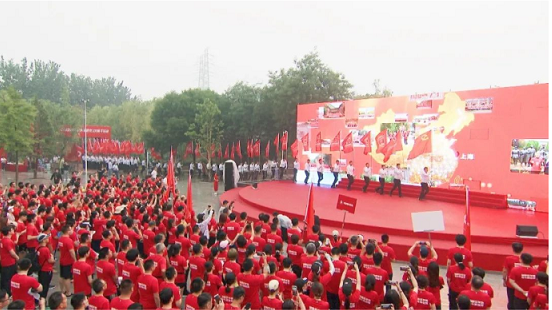 活動現場舉行了“健跑百年路奮斗新征程”100站旗手會師儀式。100位旗手高擎著鮮艷的站旗,步伐鏗鏘、氣勢昂揚,他們代表著從黨史中不斷汲取智慧和力量的中國建材人,更加明理、增信、崇德、力行,滿懷信心啟航新征程!