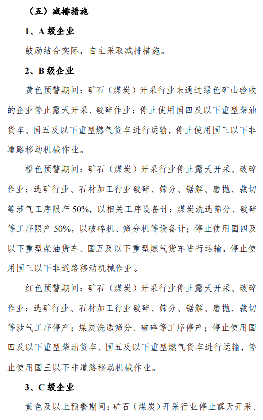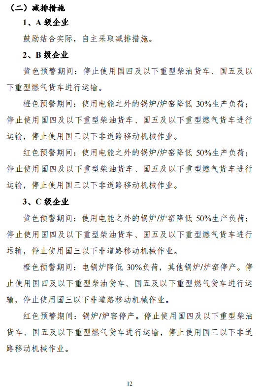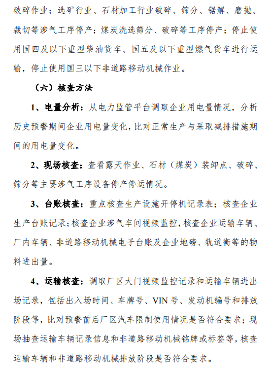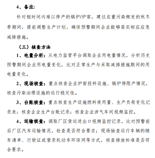 各地要對已開展績效分級的行業,應急減排措施應嚴格滿足國家《重污染天氣重點行業應急減排措施制定技術指南(2020年修訂版)》和省級績效分級有關文件等要求;對于未開展績效分級的行業,應結合本地應急減排量需求明確應急減排措施;對于電廠、供暖鍋爐房、小微涉氣企業等,納入清單,但不強制采取停限產措施,酌情采取交通運輸管控措施。揚塵源應按照揚塵污染防治規范標準明確應急減排措施。涉大宗物料運輸單位應制定應急運輸管控方案并安裝門禁系統。清單內工業企業及施工工地等均應制定重污染應急減排措施“公示牌”,并置于入廠顯眼位置。在重污染天氣預警期間,要嚴格落實應急減排清單明確的各項應急減排措施,確保可操作、可監測、可核查,切實發揮減排效應,保證績效分級工作的權威性和嚴肅性。