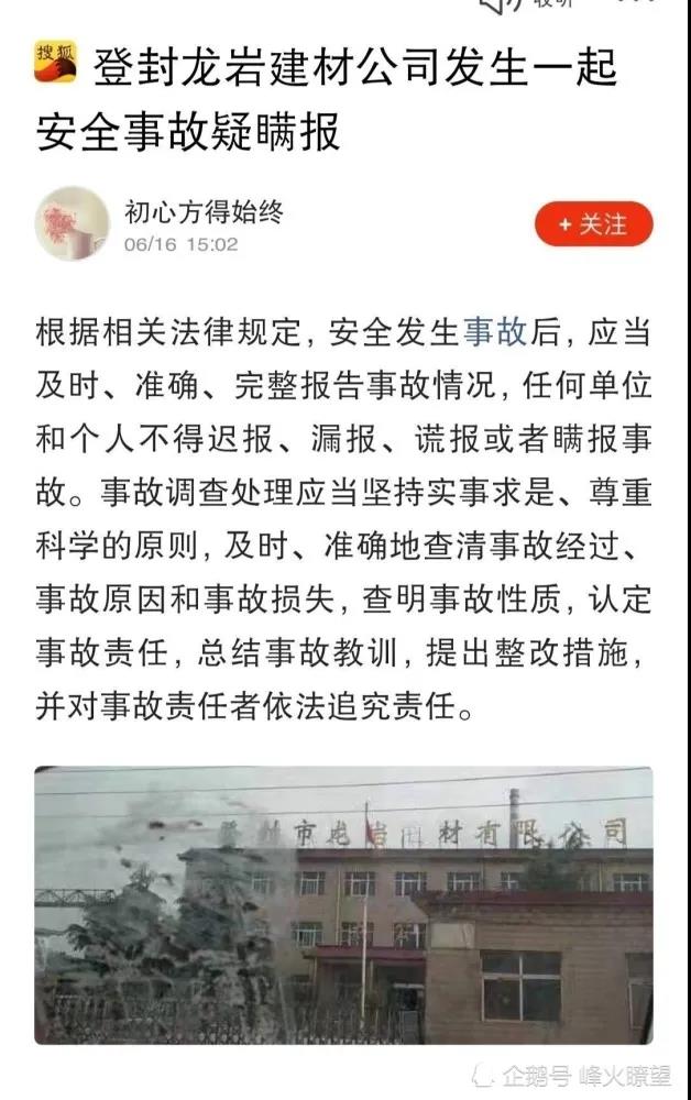 落實事故上報制度,就是為了規(guī)范生產安全事故的報告和調查處理,落實生產安全事故責任追究制度,防止和減少生產安全事故。在此,希望登封市相關部門就此事故嚴查并向外公布調查處理結果。