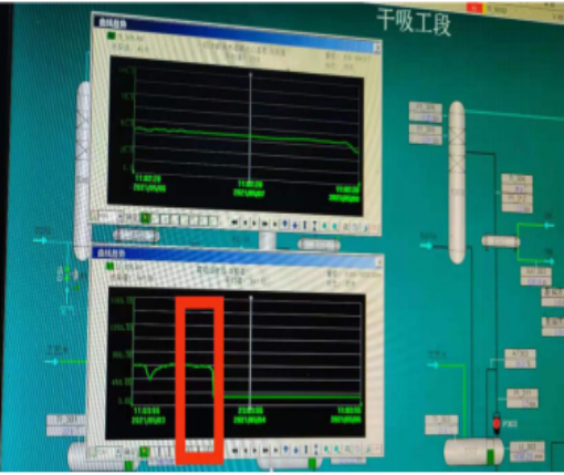 山東威特化工有限公司從事有機化工生產,大氣污染物主要為揮發性有機物(VOCs)、二氧化硫、氮氧化物、顆粒物、硫酸霧等。現場調閱中控平臺記錄發現,5月4日-8日企業正常生產,硫酸回收單元尾氣堿液吸收塔液位接近0,堿液吸收塔不正常運行,酸性尾氣未經處理直接排放。
