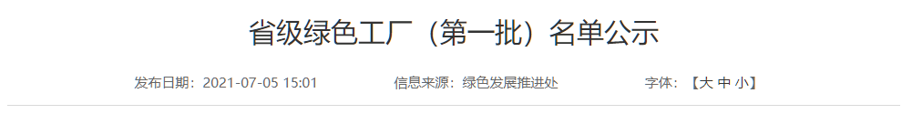 根據《山東省工業和信息化廳關于推薦省級綠色工廠(第一批)的通知》(魯工信綠發〔2021〕85號)要求,現將擬入選的省級綠色工廠(第一批)名單進行公示,請社會各界監督。公示期為:2021年7月5日—2021年7月9日。如有異議,請于公示期內以書面形式提出意見,并通過傳真反饋至山東省工業和信息化廳(請注明真實姓名及聯系方式,否則不予受理)。