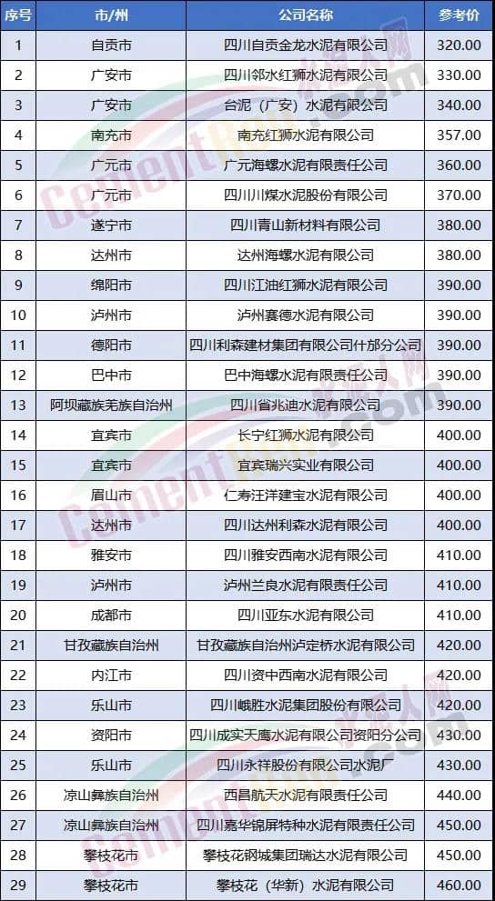 近期,四川成都、德陽、綿陽地區主要品牌廠家通知PO42.5R散裝水泥價格下調25-60元/噸。其中西南水泥下調25元/噸,江油紅獅德綿區域下調40元/噸,成都亞東、蘭豐下調40-60元/噸。此次成都德綿地區價格調整預計在本周內完成,將對成都地區遠距離品牌銷售產生較大影響。