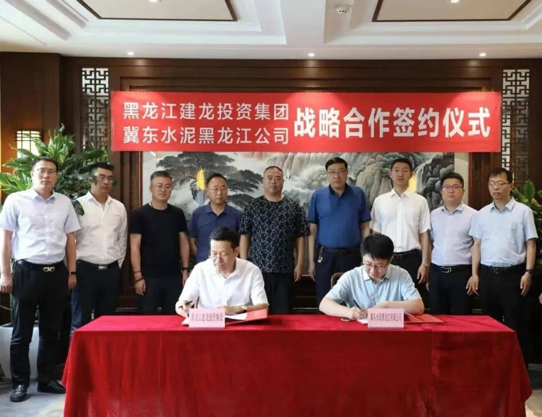為落實冀東水泥股份與建龍集團在北京簽訂的《全產業鏈戰略合作協議》精神,2021年6月30日,在吉黑區域黨委書記李曉明,北京建龍重工集團副總裁、黑龍江建龍投資集團總經理魏國棟等領導的共同見證下,冀東水泥黑龍江有限公司經理王俊華與建龍投資集團劉鳳和副經理簽署了戰略合作協議。