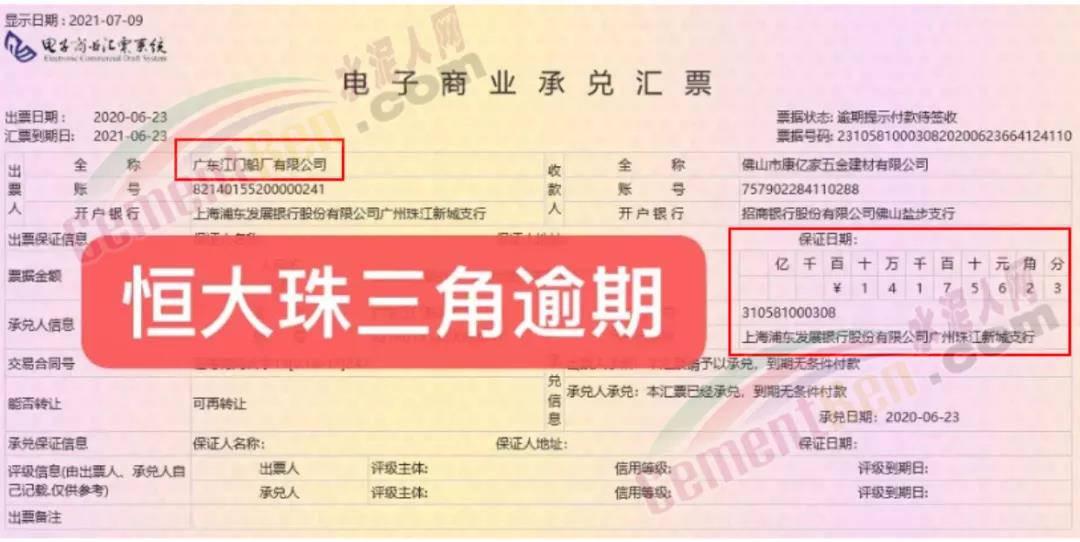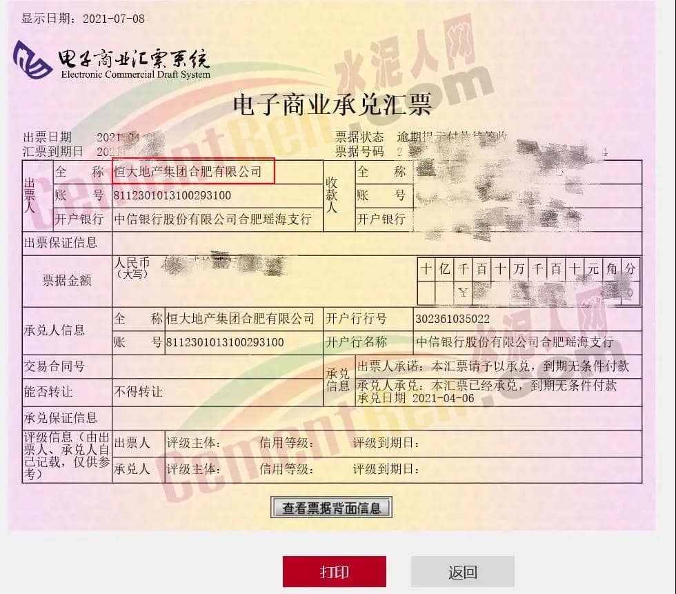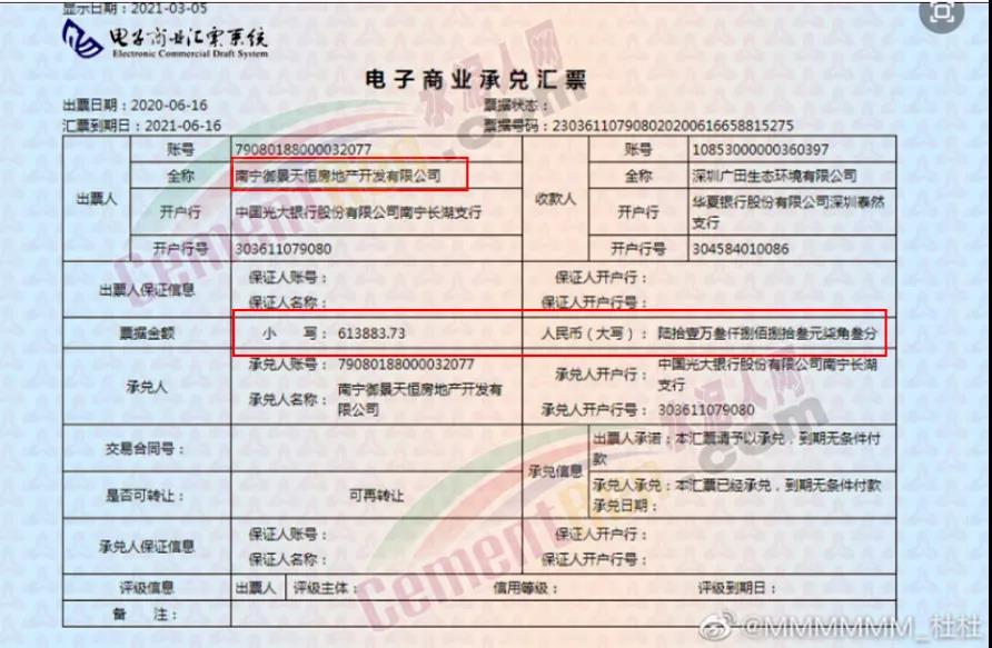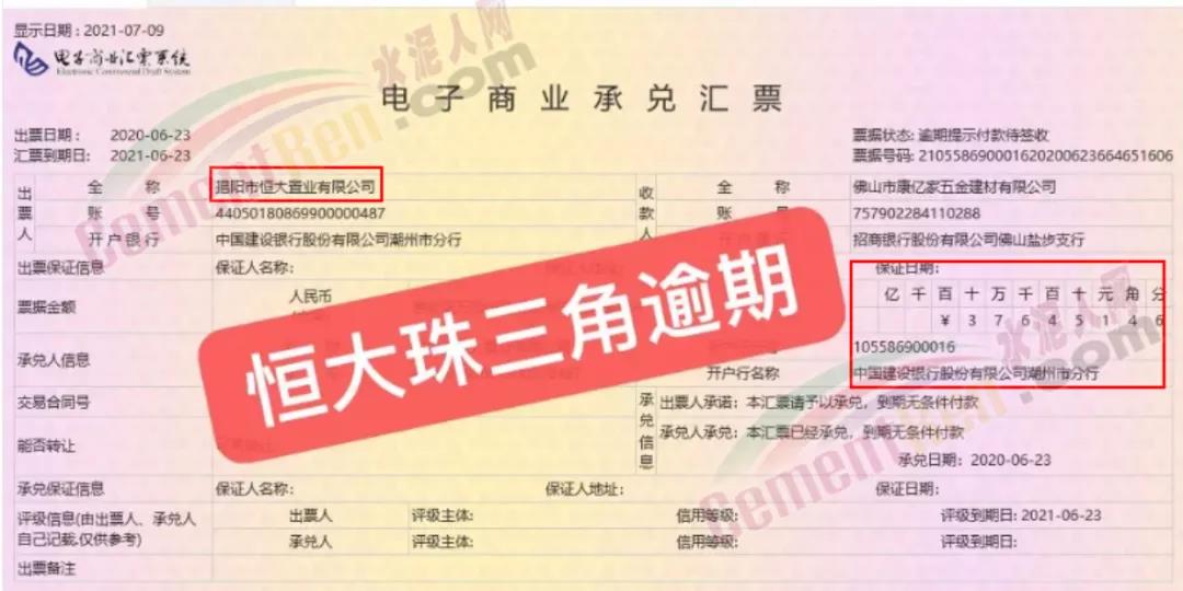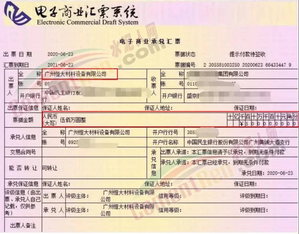 最近恒大一系列動作讓人看到了恒大降負債的決心!但是作為商票也一樣是恒大的負債,是不是也應該及時給予兌付?6月30日已過去一周多了,到處是恒大一條紅線轉綠的新聞,這里我們看到了恒大降負債的決心,但是恒大集團不應該僅僅只是降有息負債,商業承兌匯票也是其債務的一部分,到期了應該及時兌付,這樣才是真正的在降負債,而且也不失一個大企業的信用。作為旗下子公司廣州恒大材料設備有限公司是不是應該積極響應集團制定的政策?