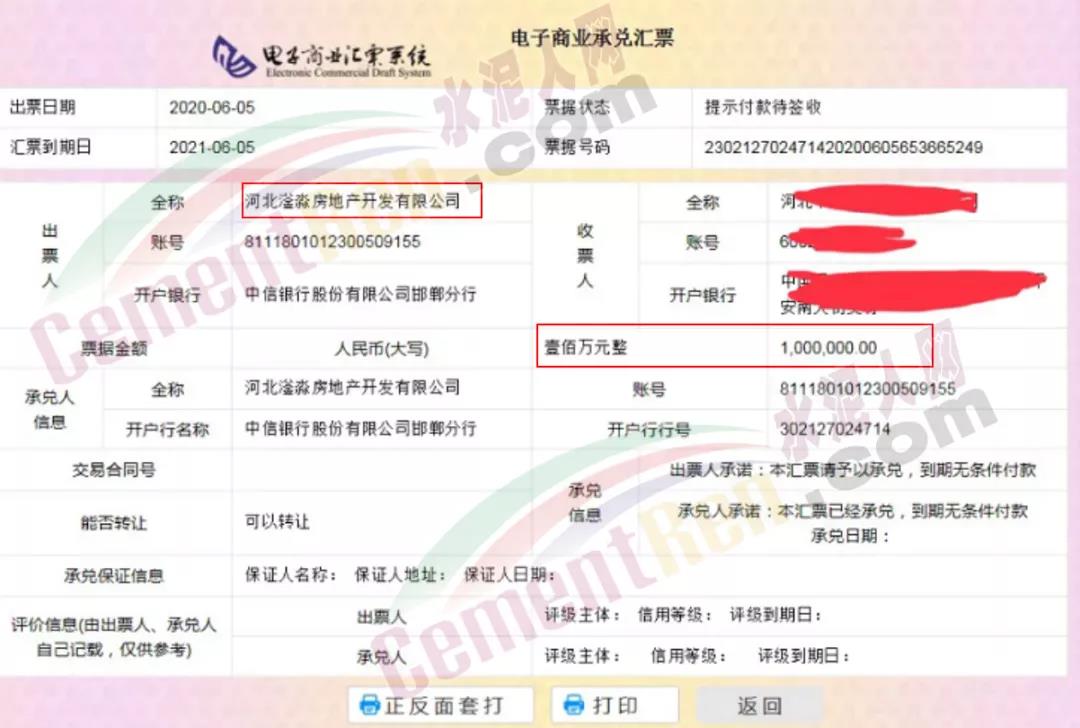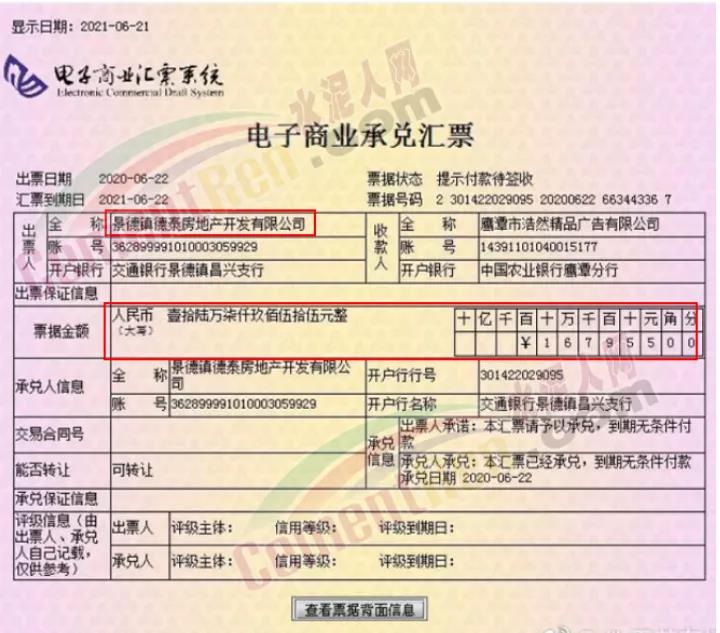 據水泥人網了解,近年來國內承兌匯票逾期事件頻發,給很多終端企業造成了很大的經濟損失,在近兩年的兩會中,很多人大代表紛紛提議取消承兌匯票,但最終如泥牛入海,并沒有得到重視。因此,國內承兌匯票違約事件依然沒有得到有效解決。