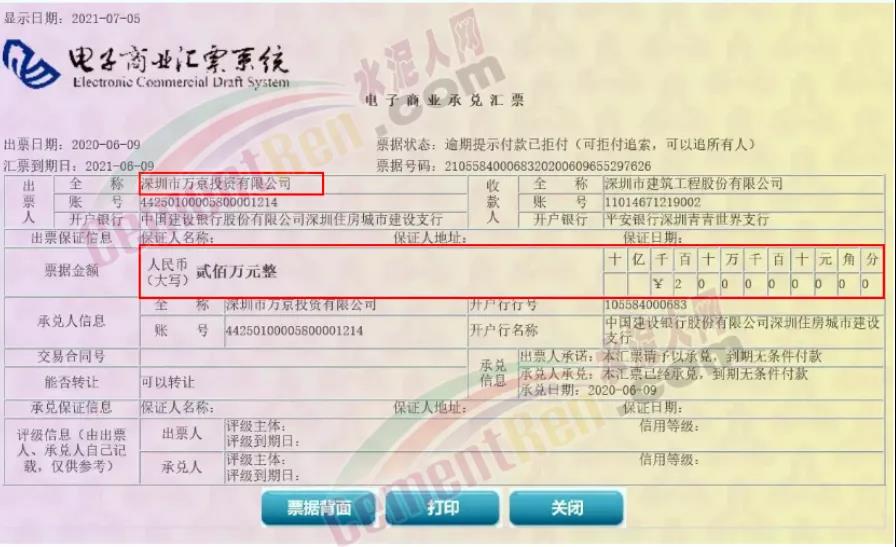2021年6月9日,深圳市建筑工程股份有限公司200萬元商業承兌匯票逾期未收到款項。