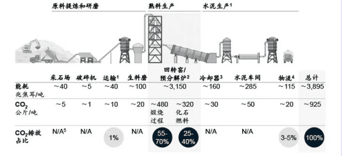 圖1.水泥生產全周期過程中的能耗和排放細分