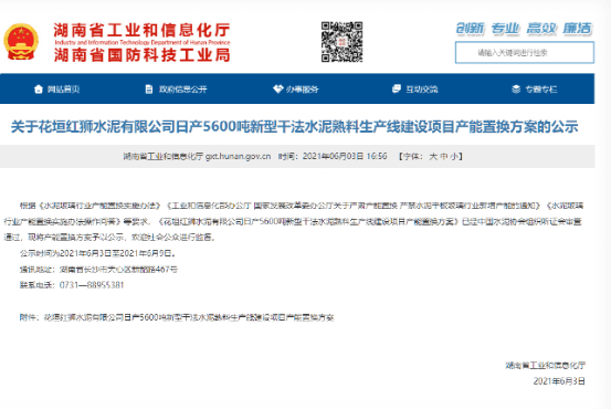 花垣紅獅水泥新建5600t/d熟料生產(chǎn)線,2022年12月點(diǎn)火投產(chǎn)
