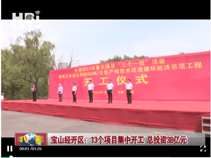視頻:總投資6.18億元的河南省同力水泥有限公司4500t/d新型干法水泥熟料生產(chǎn)線技術(shù)改造循環(huán)經(jīng)濟(jì)示范工程開(kāi)工