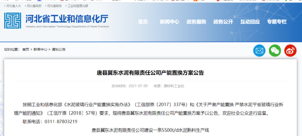 唐縣冀東水泥有限責(zé)任公司通過(guò)減量置換退出約255萬(wàn)噸產(chǎn)能,新建一條5500t/d水泥熟料生產(chǎn)線,置換比例1.5:1。將于2023年6月點(diǎn)火投產(chǎn)。