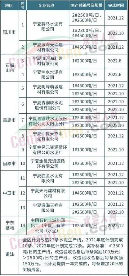 寧夏全區(qū)計劃改造22條水泥生產(chǎn)線