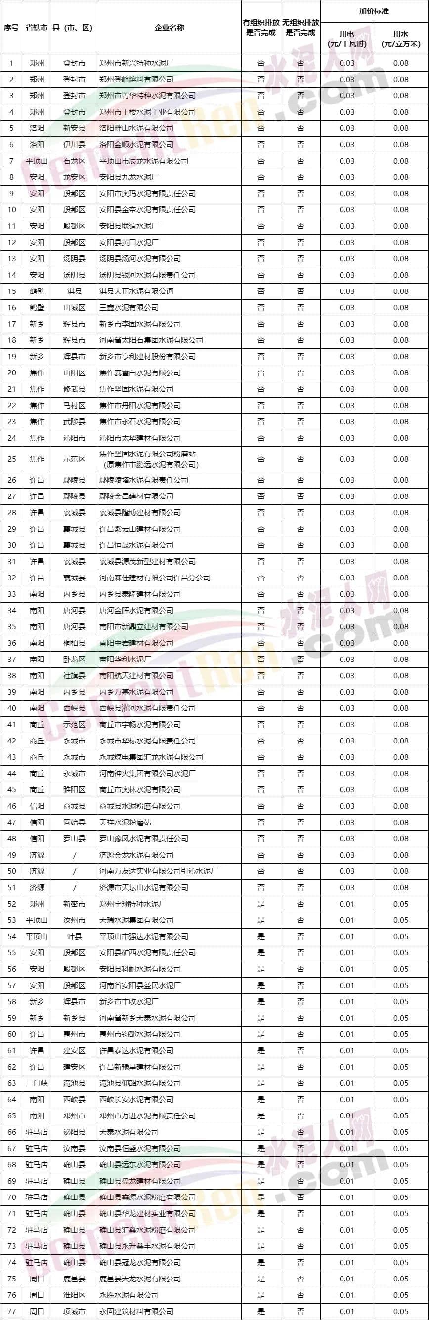 7月1日,河南省發(fā)改委發(fā)布《關(guān)于對未完成超低排放改造鋼鐵水泥企業(yè)實施差別化電價水價的通知》。根據(jù)通知,河南省發(fā)改委決定自2021年7月1日起,對河南昌泰不銹鋼板有限公司等83家有組織排放、無組織排放均不達標的企業(yè),用電加價0.03元/千瓦時、用水加價0.08元/立方米;對鄭州宇翔特種水泥廠等27家有組織排放、無組織排放僅一項達標的企業(yè),用電加價0.01元/千瓦時、用水加價0.05元/立方米。