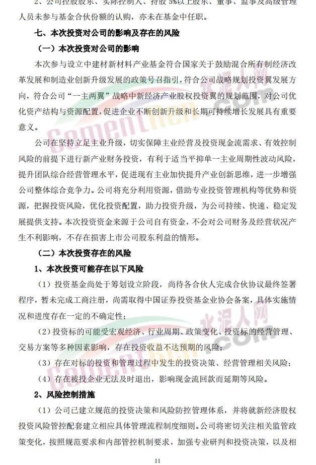 獨(dú)特的混合所有制機(jī)制形成的“高效+規(guī)范”文化已成為公司持續(xù)健康發(fā)展的根本基礎(chǔ)和核心優(yōu)勢(shì)之一。本次響應(yīng)中國建材及國有大型政策引導(dǎo)基金的發(fā)起而積極參與設(shè)立新材料產(chǎn)業(yè)基金,是公司繼續(xù)貫徹與傳承總體發(fā)展戰(zhàn)略的務(wù)實(shí)行動(dòng),對(duì)進(jìn)一步優(yōu)化資產(chǎn)結(jié)構(gòu)與資源配置,促進(jìn)企業(yè)不斷創(chuàng)新升級(jí)和長期可持續(xù)增長發(fā)展具有重要意義。
