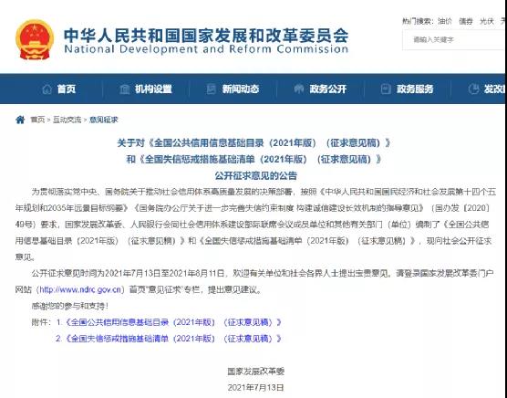 日前,國家發(fā)改委發(fā)布了《全國失信懲戒措施基礎(chǔ)清單(2021年版)(征求意見稿)》公開征求意見的公告》其中清單所列失信懲戒措施包括三類,共14項: