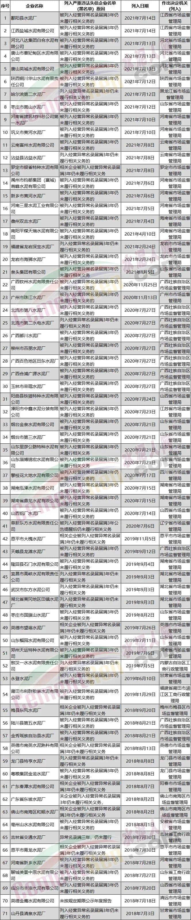 圖片71家水泥企業(yè)被列嚴(yán)重違法失信企業(yè)“黑名單”