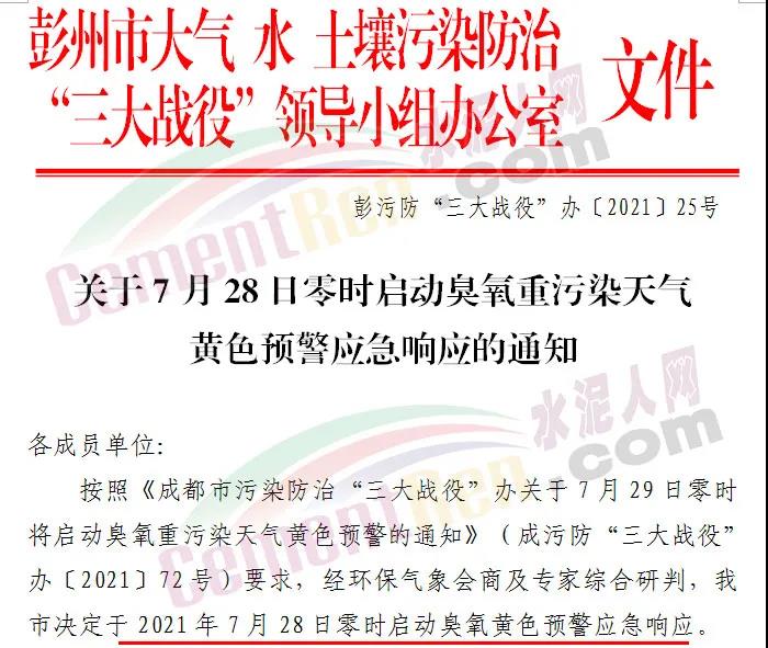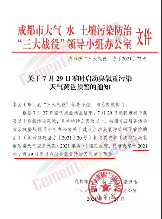 據水泥人網了解,成都市決定于7月29日零時啟動臭氧重污染天氣黃色預警。四川多地發布高溫橙色預警信號,成都、瀘州、達州、南充、遂寧、自貢都官宣進入“晴熱少雨”高溫模式。