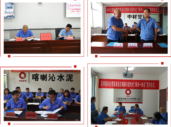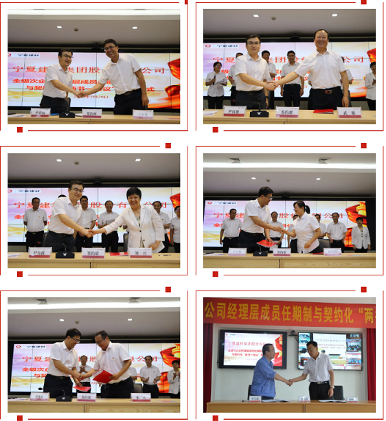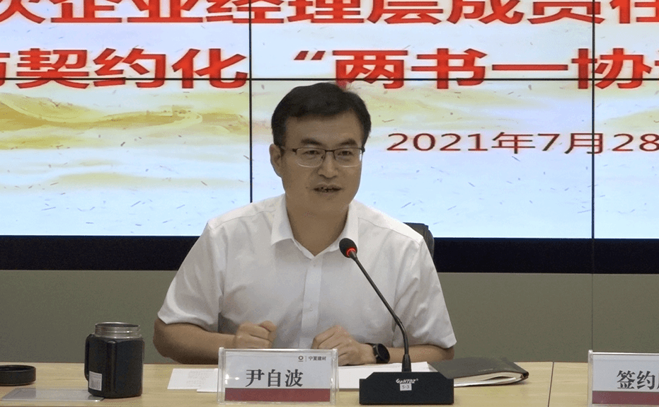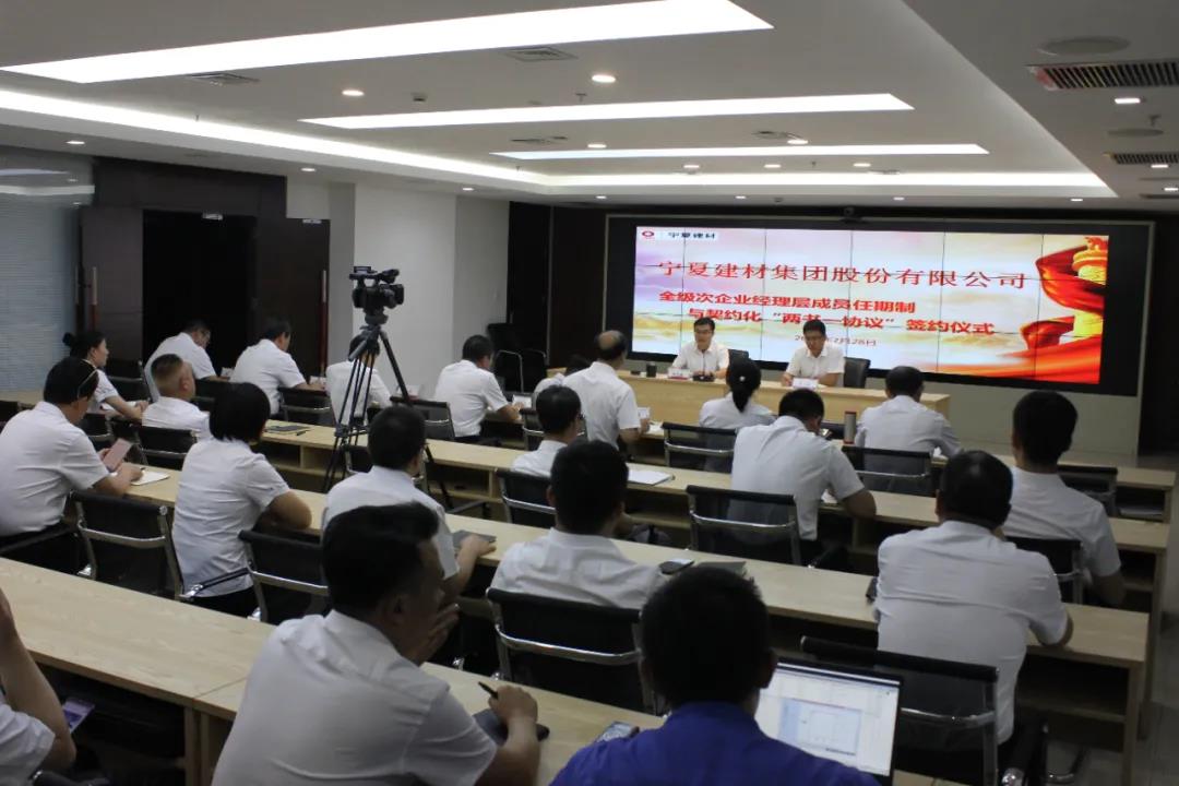 2021年7月28日,寧夏建材集團股份有限公司舉行全級次企業經理層成員任期制與契約化“兩書一協議”簽約儀式。公司董事長尹自波、總裁王玉林以及其他經理層副職人員、職能部室全體成員和所屬成員企業經理層成員、中層以上管理人員參加了本次簽約儀式。