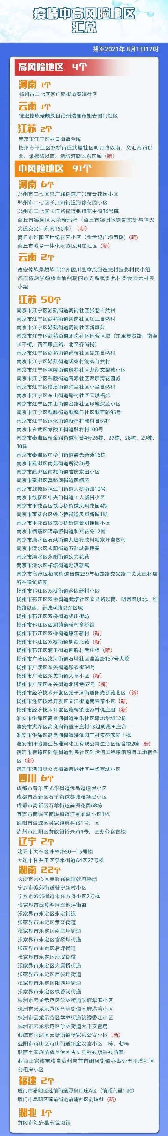 據(jù)人民網(wǎng)消息,自8月1日起,江蘇揚(yáng)州1個地區(qū)調(diào)整為高風(fēng)險,8個地區(qū)調(diào)整為中風(fēng)險。截至8月1日17時,全國有4個高風(fēng)險地區(qū),91個中風(fēng)險地區(qū)。