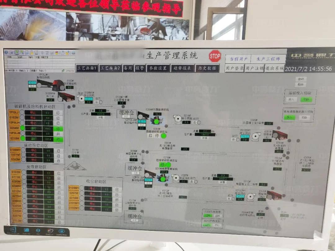 礦山生產管理系統對整條骨料生產線進行自動化遠程控制和設備運行狀態、工藝過程、料位信息的監控和監測,以中控室為指令和調度中樞,實現整個工廠生產、銷售層面的集控與聯動。