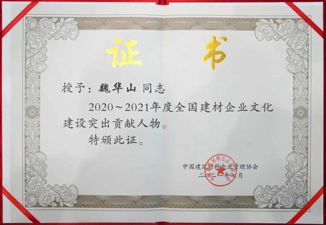 集團董事長魏華山先生獲評全國建材企業(yè)文化建設突出貢獻人物
