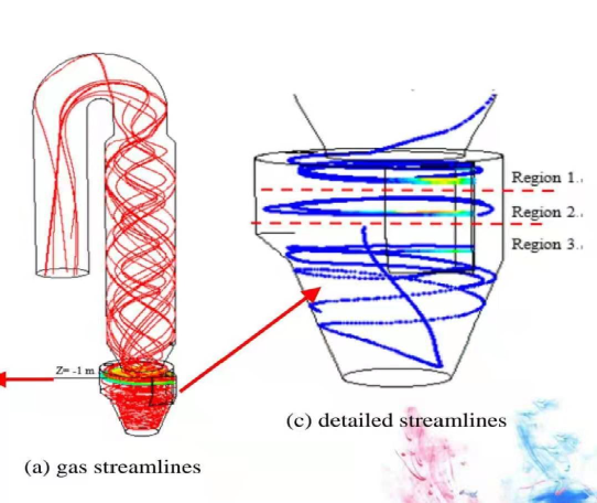 根據武漢理工大學謝峻林教授團隊的數值模擬技術,日照中聯水泥2#分解爐內氣體流向如下圖: