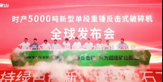 日前,棗莊鑫金山智能裝備有限公司(以下簡稱“鑫金山”)又一創新成果全球首發:時產5000噸新型單段重錘反擊式破碎機新品發布會成功舉行。
