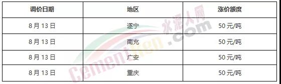 一次性漲50元/噸,川渝地區(qū)水泥430元/噸