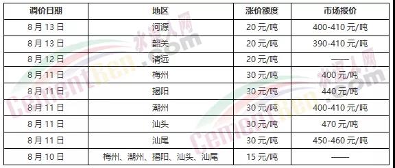 廣東多地兩輪上調(diào),市場報價400-470元/噸