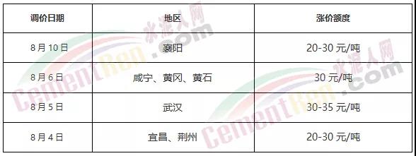 8月16日江西吉安地區(qū)主流品牌水泥通知價格上調(diào)30元/噸,下游需求漸恢復(fù)水泥價格再次上漲,兩輪累計漲價90元/噸,預(yù)計后期行情繼續(xù)保持穩(wěn)中偏強態(tài)勢。漲價后,江西永豐南方及贛州南方萬年青水泥PO42.5散裝水泥報價415元/噸。