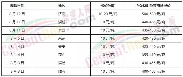 連漲兩輪,山東水泥價格突破500元/噸