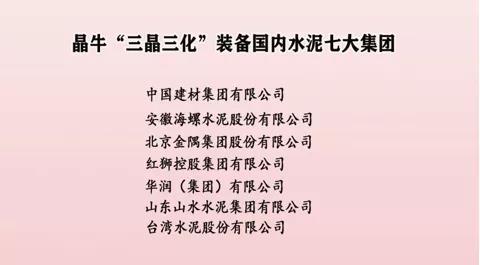 四、中國十大水泥集團中七大集團分布的26個省的300條生產線的20多個部位裝備了晶牛“三晶三化”設備,均收到理想效果