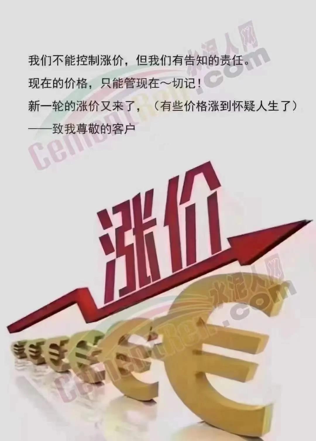 有水泥銷售表示,“我們不能控制漲價,但是我們有告知的責任。現在的價格,只能管現在~新一輪的漲價又來了,有些價格漲到懷疑人生了!”