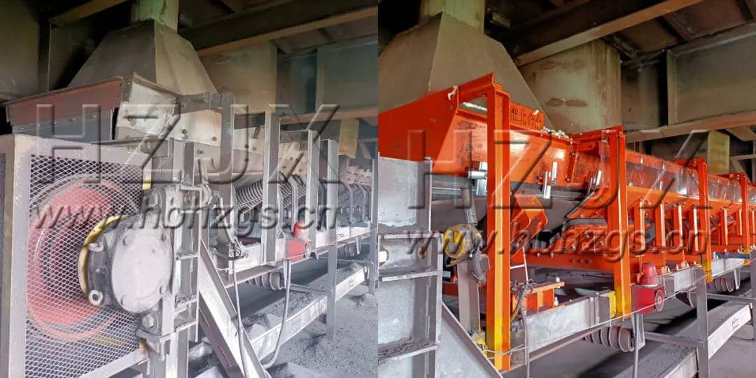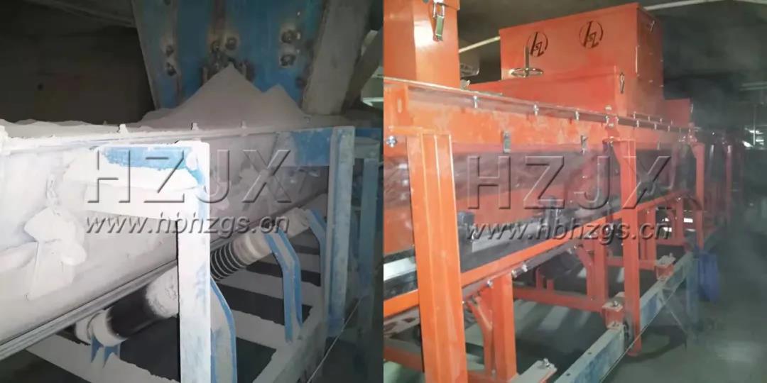 上峰水泥子公司導料槽改造前(左)后(右)對比
