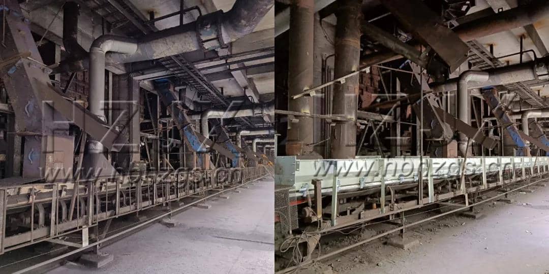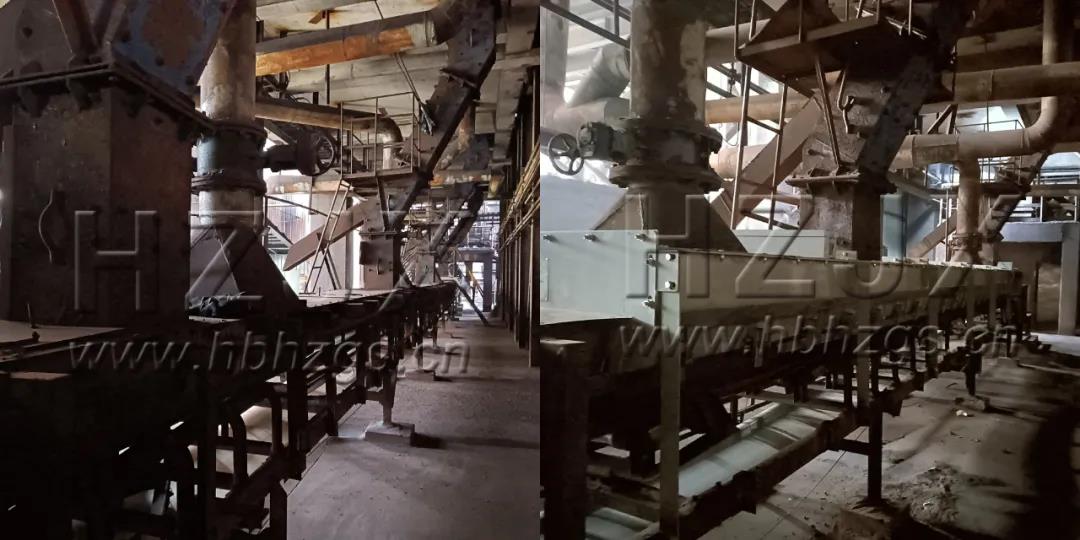 連云港賓鑫鋼鐵導料槽改造前(左)后(右)對比