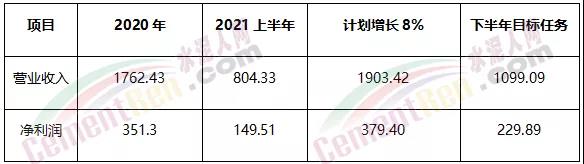 如2021年完成增收8%的目標,營業收入就要達到1903.44億元,凈利潤達到379.4億。除去上半年已經完成的,下半年營業收至少達到1099.09億元,凈利潤達到229.89億元,任務之艱巨可想而知。