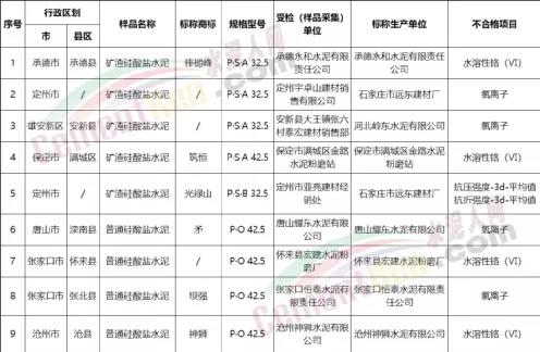 日前,河北省市場監(jiān)管局公布了8月份水泥質(zhì)量抽查結(jié)果,其中,唐山耀東水泥有限公司、承德永和水泥有限責(zé)任公司、張家口恒泰水泥有限責(zé)任公司等10批次水泥產(chǎn)品抽檢不合格。