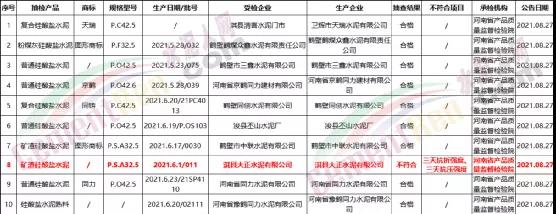 河南省鶴壁市市場監(jiān)督管理局發(fā)布2021年上半年產(chǎn)品質(zhì)監(jiān)督抽查結(jié)果顯示,淇縣大正水泥有限公司礦渣硅酸鹽水泥P.S.A32.5一個(gè)批次不合格,不合格項(xiàng)目為三天抗折強(qiáng)度、三天抗壓強(qiáng)度。