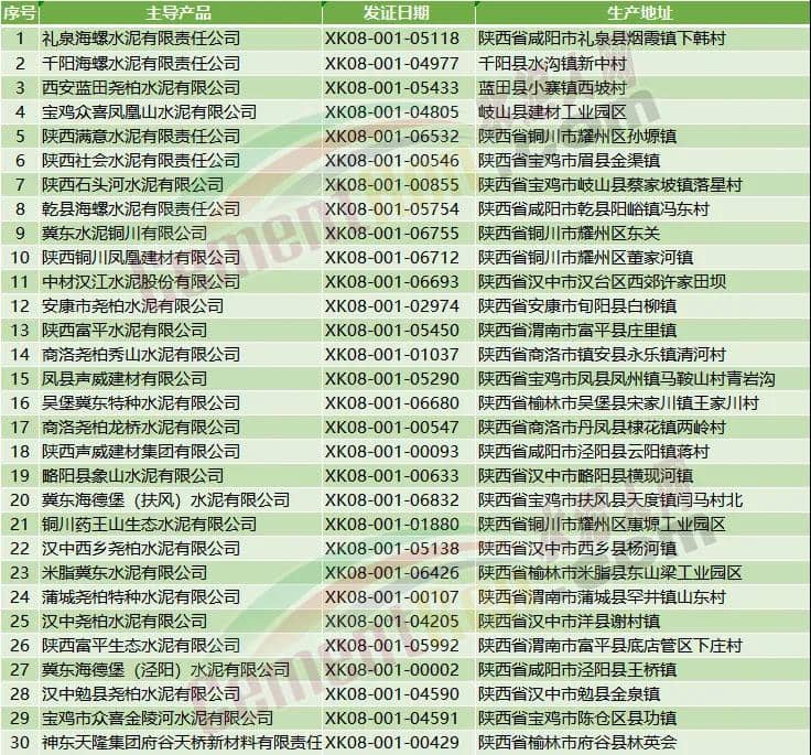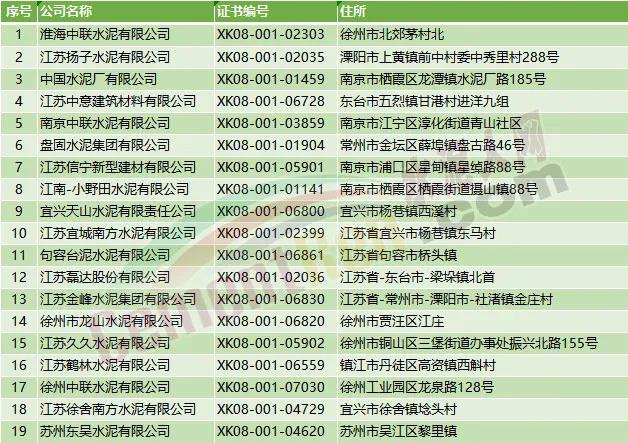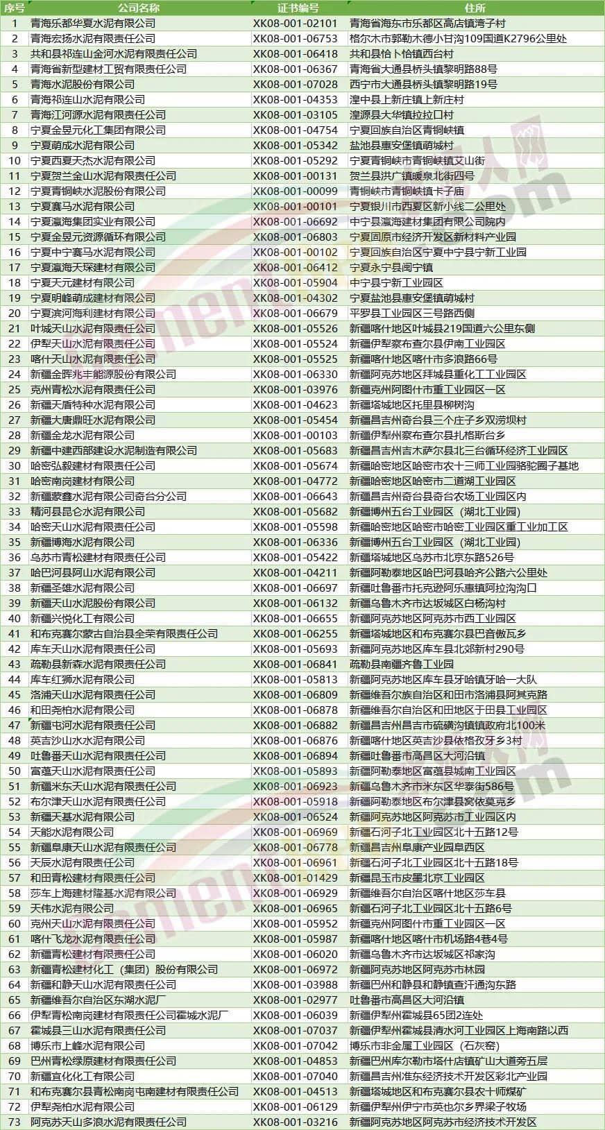 青海、寧夏、新疆部分水泥企業(yè)名單