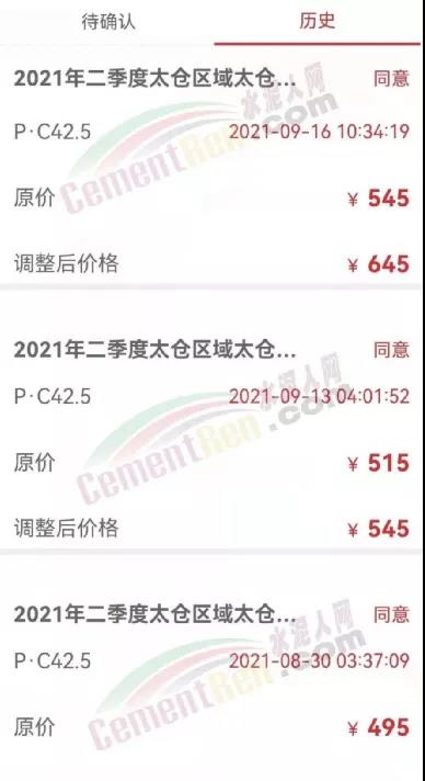 相關數據顯示,太倉海螺P.C42.5水泥從8月底的495元/噸經歷兩次漲價后,已經漲至9月16日的報價645元/噸,漲了150元/噸。