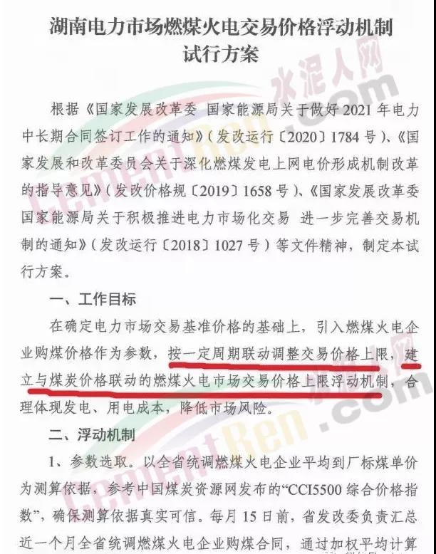 湖南省發(fā)展和改革委員會9月27日印發(fā)《關于完善我省燃煤發(fā)電交易價格機制的通知》及《湖南電力市場燃煤火電交易價格浮動機制試行方案》提到,自2021年10月起,湖南省將在確定電力市場交易基準價格的基礎上,引入燃煤火電企業(yè)購煤價格作為參數(shù),按一定周期聯(lián)動調整交易價格上限,建立與煤炭價格聯(lián)動的燃煤火電市場交易價格上限浮動機制,合理體現(xiàn)發(fā)電、用電成本,降低市場風險。