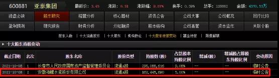 目前海螺水泥除持有亞泰集團5%股份外,其持股比例超過5%的上市公司還有新力金融和西部水泥,持股比例分別為6.08%和24%。