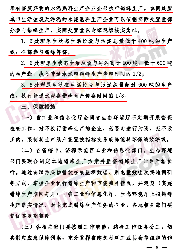 3.日處理原生狀態生活垃圾與污泥總量超過600噸的生產線,執行普通水泥窯錯峰生產停窯時間的1/3。
