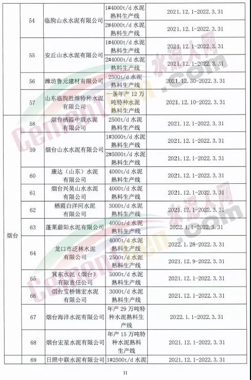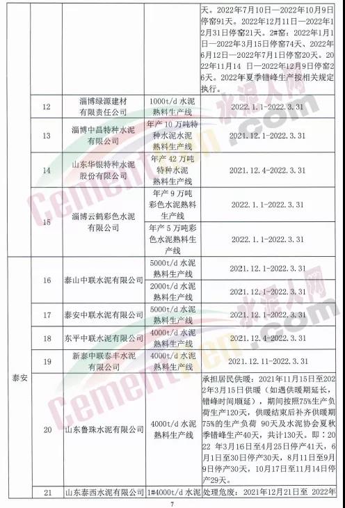 10月15日,山東省水泥行業(yè)協(xié)會(huì)發(fā)布山東水泥熟料企業(yè)2021-2022年采暖季錯(cuò)峰生產(chǎn)實(shí)施方案要求,山東水泥熟料企業(yè)的所有水泥熟料生產(chǎn)線2021年12月1日0:00-2022年3月31日24:00實(shí)施錯(cuò)峰生產(chǎn)。