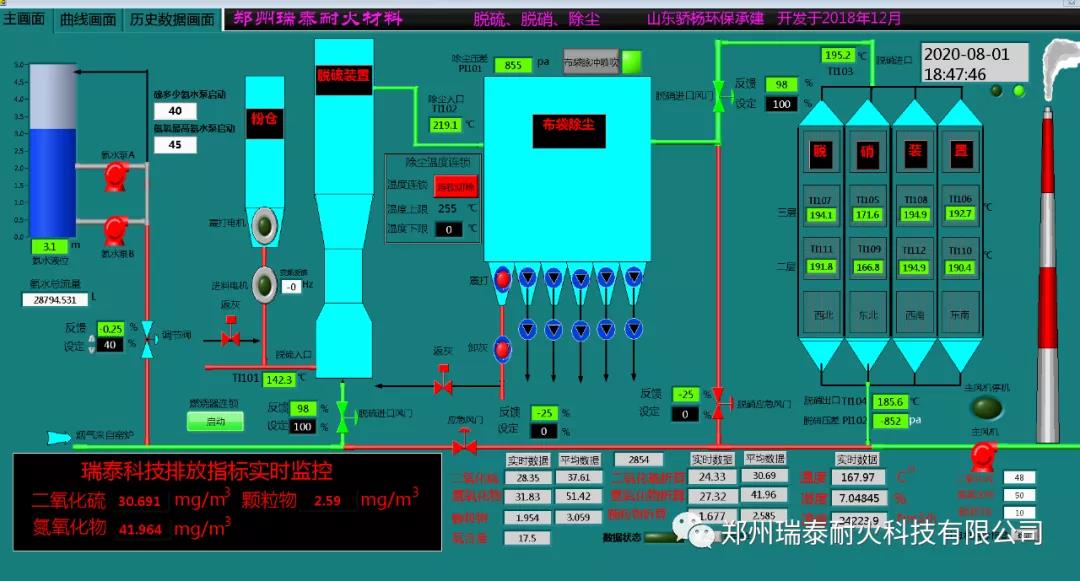 脫硫、除塵、脫硝環保設備實時監控畫面