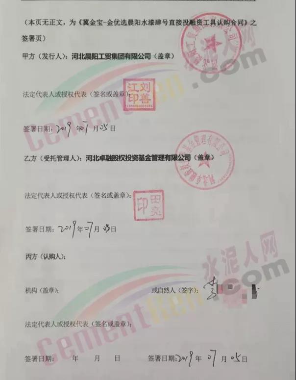據(jù)相關人士介紹,晨陽集團的民間融資是通過河北卓融股權投資基金管理有限公司完成的,根據(jù)認購合同顯示:發(fā)行人為河北晨陽工貿集團有限公司,受托管理人為河北卓融股權投資基金管理有限公司,備案登記場所為河北金融資產(chǎn)交易所有限責任公司。