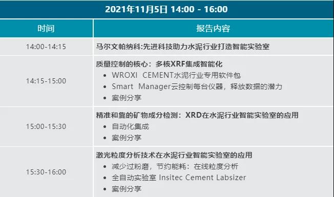 基于以上水泥行業(yè)生產(chǎn)質(zhì)量控制的需求,馬爾文帕納科本著行業(yè)領(lǐng)先分析儀器供應(yīng)商的社會(huì)責(zé)任感,定于11月5日(本周五)舉辦《水泥企業(yè)實(shí)驗(yàn)室智能化網(wǎng)絡(luò)研討會(huì)》,屆時(shí)將針對(duì)水泥生產(chǎn)過(guò)程中的礦山開(kāi)采、堆場(chǎng)管理、生料制備、熟料燒成到水泥生產(chǎn)等環(huán)節(jié)展開(kāi)探討,具體的研討會(huì)日程安排如下:研討會(huì)日程安排: