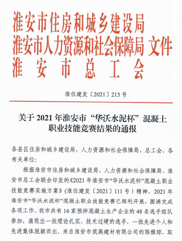 日前,?2021年淮安市“華沃水泥杯”混凝土職業技能競賽已圓滿完成各項工作,共有16家預拌混凝土生產企業的48名選手組隊參加,涌現出一批理論扎實、技術過硬的選手,一批先進個人和先進集體脫穎而出。