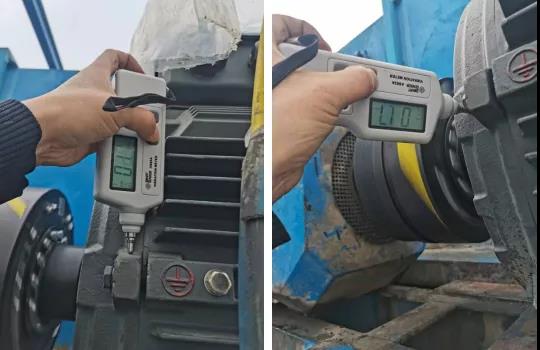 1、振動大幅減小(現場測量振動值:電機端水平2.3 mm/s,垂直0.9 mm/s,軸0.2 mm/s;減速機端水平0.4 mm/s,垂直0.2 mm/s,軸0.4mm/s)。